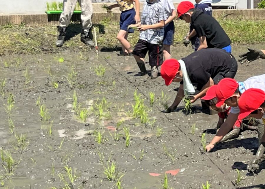 田植 こんにちは。辰巳住宅株式会社 営業事務 伊藤です。毎年、密かにお米作りを手伝っています。春に地域の子供たちと田植をして、稲刈り→脱穀となります。 天候に大きく左右される農業。猛暑や猪の影響で自給率も下がっていますが、食生活を見直すきっかけになりました。「備蓄米がある安心」と「自分で育てたお米を食べる喜び」、その両方を大切にしたいと思いました。