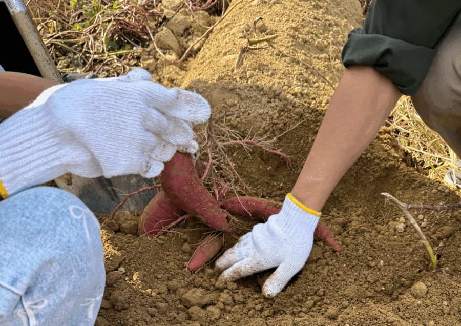 いもほり体験でたくさん収穫してもらった「紅はるか」は22日のやきいもイベントで西部ガスさんのキッチンカーで焼いて提供する予定ですので、是非寝かせておいしくなった焼き芋食べに来てください♪