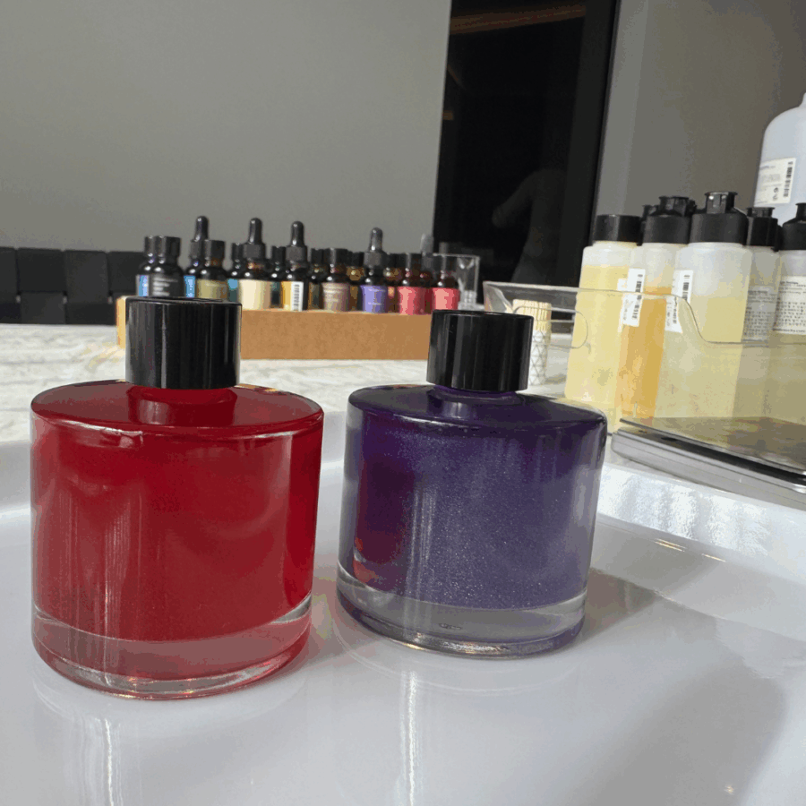 オーロラディフーザーの方は、香水にも使われている香りと色、キラキラする粉などをどんどん混ぜていくんですが、実験みたいで大人も子どもも楽しく参加できました♪(小学校低学年の子でも上手にできました♪)