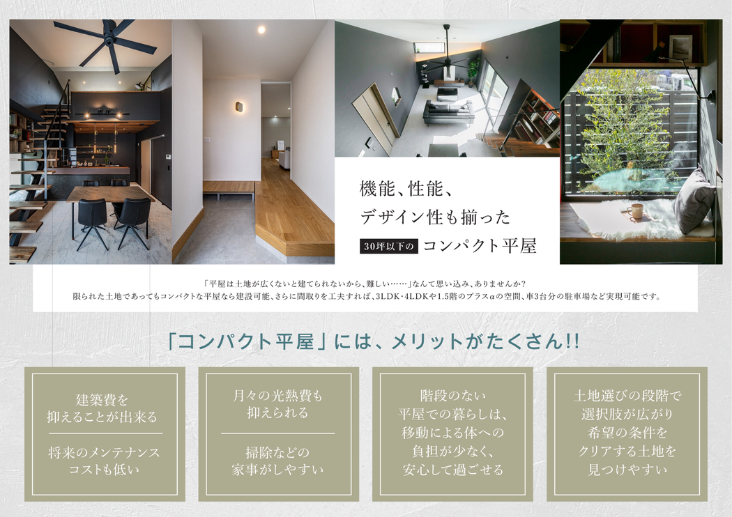 ・機能、デザイン性にもこだわったメンテナンスも楽になる「コンパクト平屋」