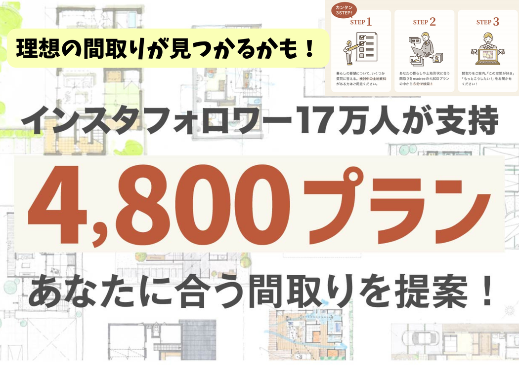 4800プランの間取りからカンタンに間取り探しが出来る「madree」とコラボ中の「土地・間取り無料相談会」も同時開催中です!