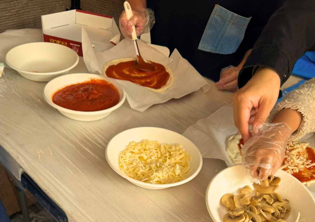 クリスマスにもぴったりなピザづくり、好きな具材をトッピングできちゃいます!