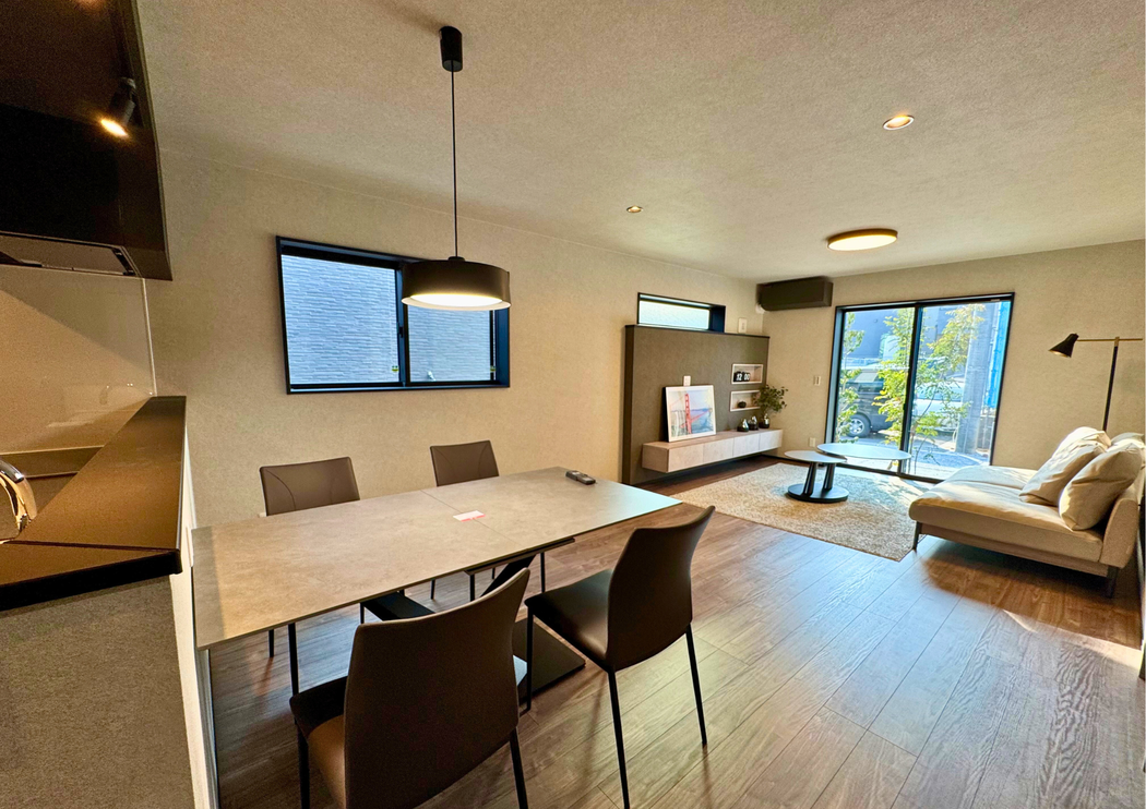 広々空間のLDKは、シックな色合いが落ち着いた雰囲気を演出